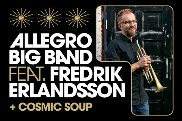 Fredrik Erlandsson och Allegro Big Band bjuder in till en svängig konsert med funk- och beatbaserad storbandsmusik. Inspirationen kommer från 1970- och 80-talens fusionsjazz, där fokus ligger på komplexa och kantiga synkoper framom ett mjukt tassande gung.