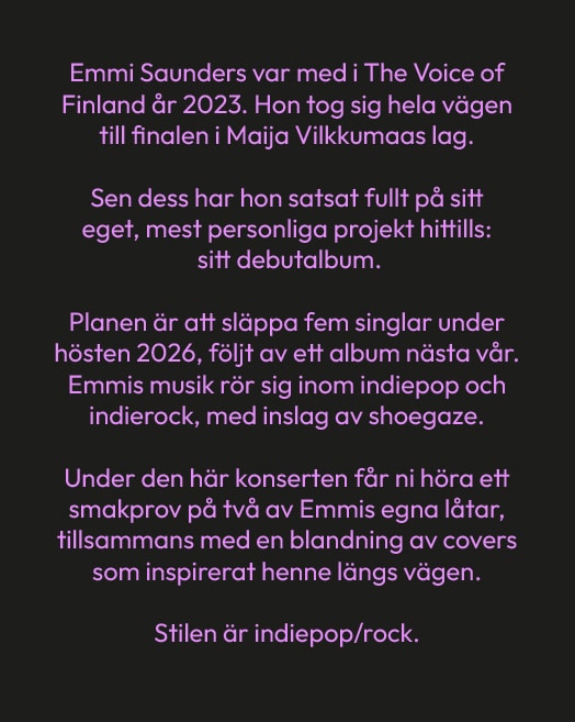 18:00 EMMI SAUNDERS/ Shaumansalen