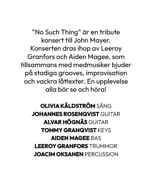 19:00 NO SUCH THING-A JOHN MAYER TRIBUTE/ Shaumansalen